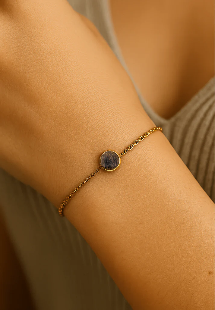 Una vez realizada, la pulsera es resistente al agua y al desgaste diario gracias al acero inoxidable, lo que te permite llevar este recuerdo con comodidad a diario.