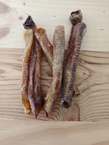 Las Traqueas de Cordero (100 g) son un masticable puramente natural, elaborado con traquea de cordero limpia y cuidadosamente deshidratada. Richas en cartílago natural, aportan glucosamina y condroitina, nutrientes esenciales que favorecen la salud articular.